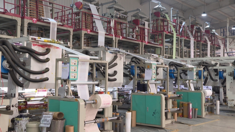 走进公司车间,机器轰鸣,20条吹膜线与18条制袋线全速运转,一卷卷全降解薄膜正在飞速下线,这些产品即将供应给各大知名商超、快递公司、航空公司。自去年2月建成投产以来,企业仅用十个月时间便实现营业额突破两亿元,今年一季度订单排期火热,呈现产销两旺的蓬勃态势。
